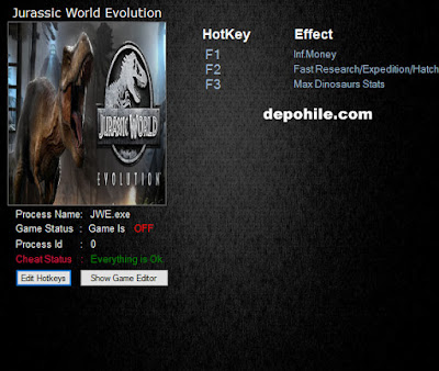 Hilenin görüntüsü yukardaki gibidir , Jurassic World Evolution için hile arayanlar indirebilir